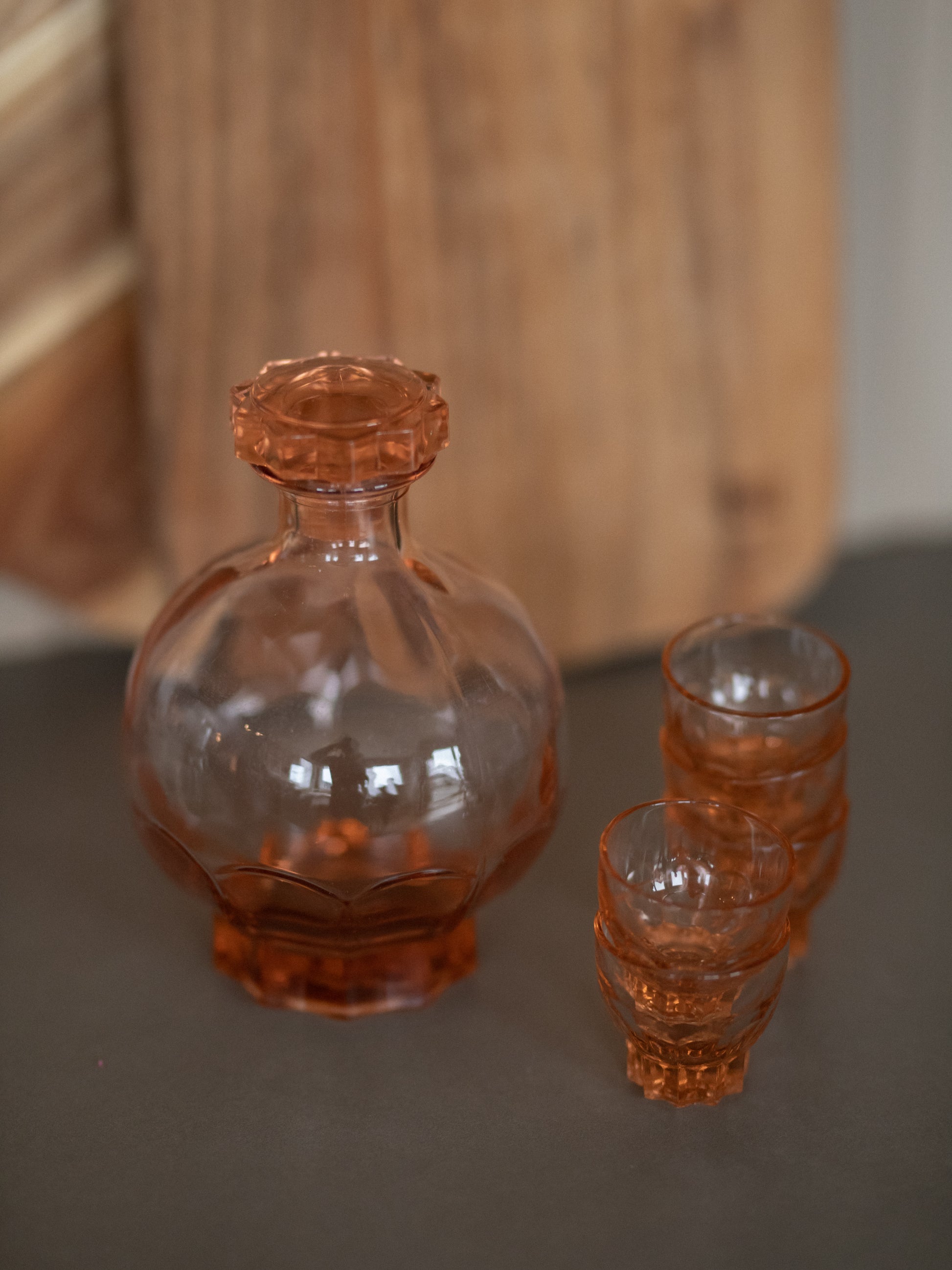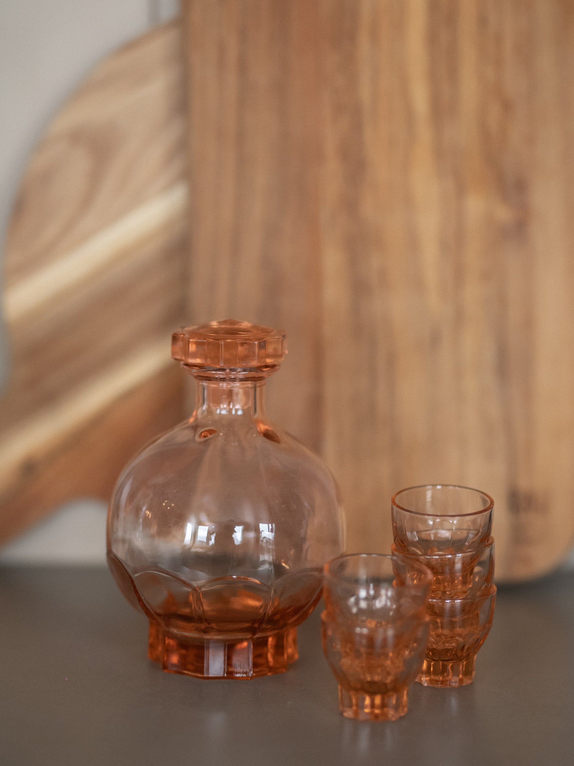 Vakrere likørflaske og glass skal du lete lenge etter. Vi foreslår også å ha ingefærshoten i denne vakre flasken. 5 glass og likørflaske.