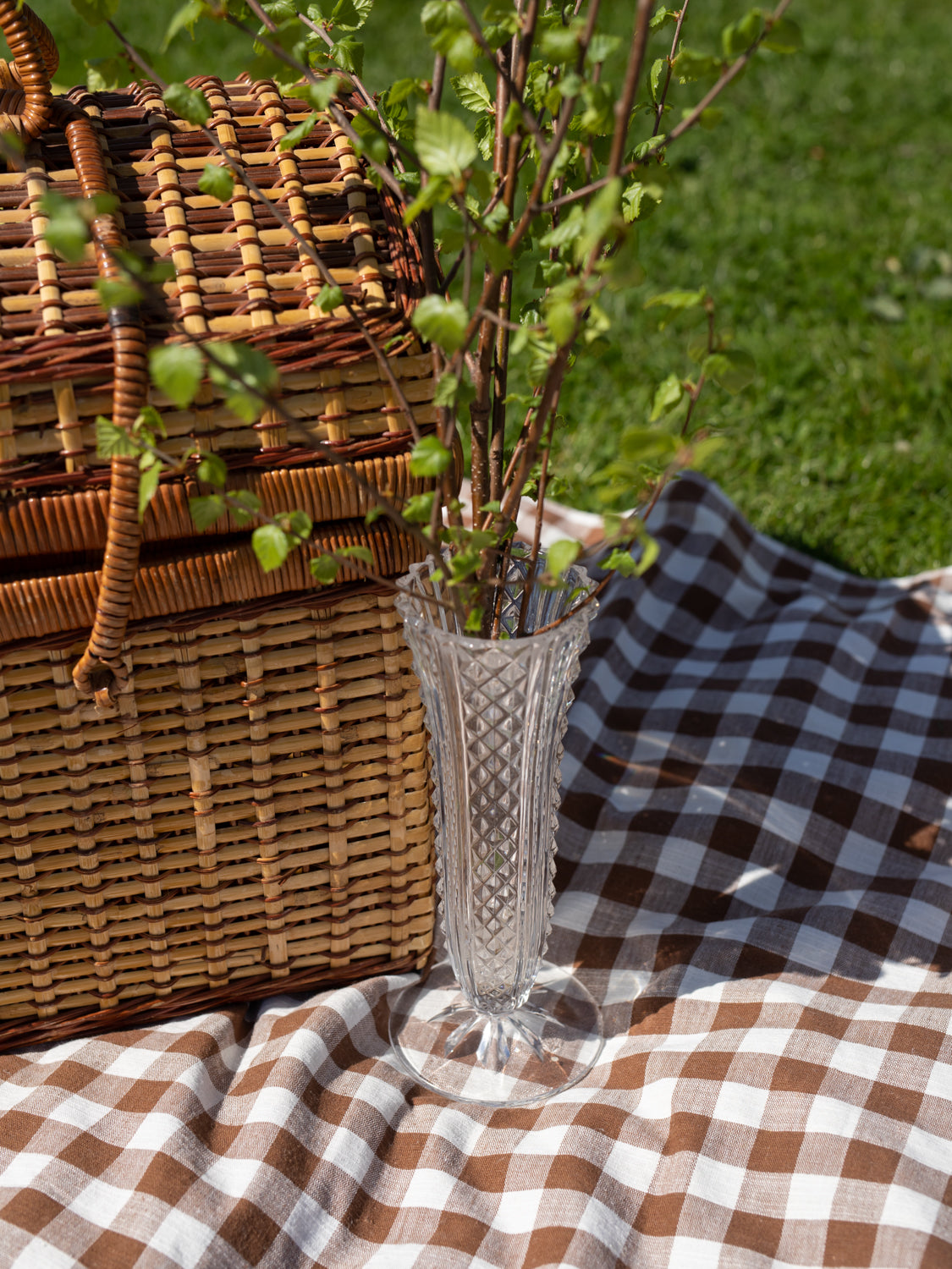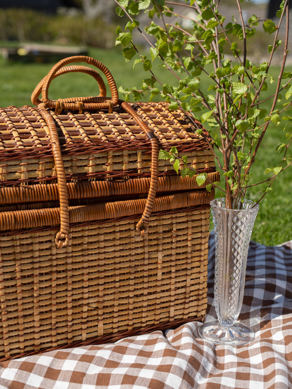 Kul glassvase i fin fasong. Dekk sommerbordet med glass vaser i ulike fasonger og høyder. Denne er rå med høye hengende sommerblomster i.